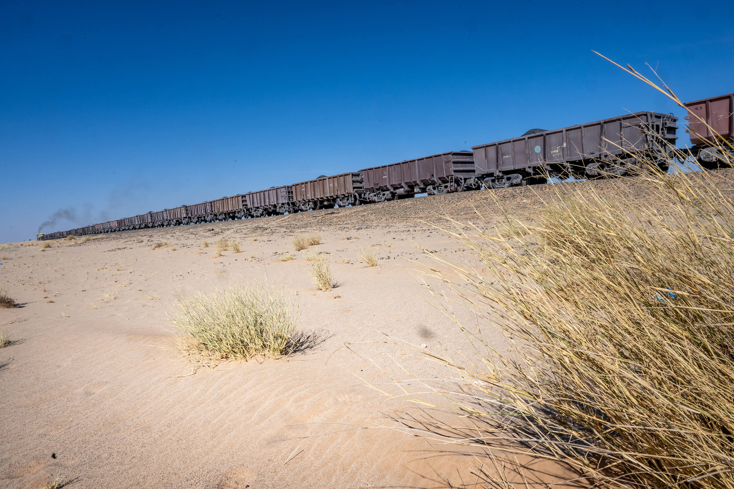 Diese Fotos beschreiben meine erste Reise nach Westsahara und Mauretanien. Mit Sicherheit wird das nicht meine letzte Fahrt in diese Region bleiben. Zunächst bin ich tagelang mit meinem Landy unterwegs, entlang der 652 Kilometer langen Erzbahn vom Hafen in Nouadhibou bis zum Eisenerzabbauort Zouerat. Mit bis zu 250 aneinandergekoppelten Waggons ist das der längste Frachtzug der Welt. Drei amerikanische Loks sind ihm vorgespannt.
