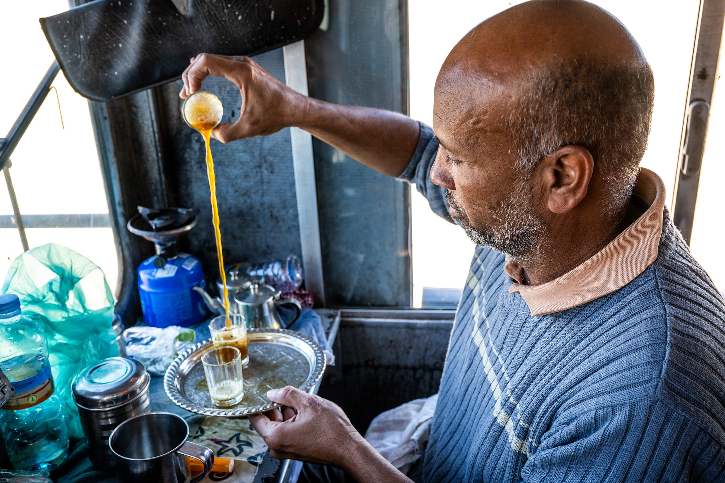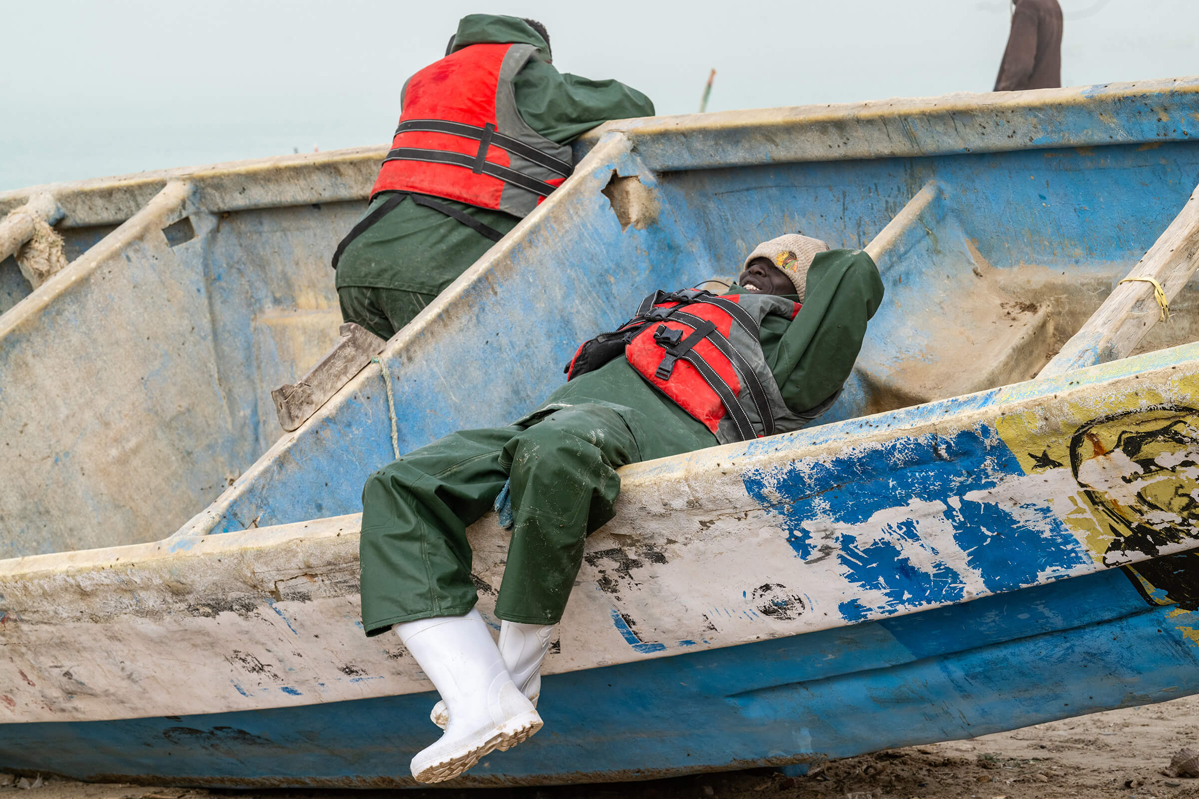 Meinen Hauptanziehungspunkt bildeten abermals die Menschen: Das Mädchen mit dem endlos traurigen Blick, das plötzlich in Choum vor mir stand. Just, der Niederländer mit seiner berührenden Lebensgeschichte, der in Atar das Bab Sahara seit den Zeiten, als noch die Paris-Dakar-Rallye durch Mauretanien führte, betreibt. Der Chamelier, dem ich im tagelangen Sandwind begegnete und der sich um seine Dromedare kümmerte, als gäbe es nichts Selbstverständlicheres, als diese auch im beginnenden Sturm zur Tränke zu führen. Die Fischer von Nouakchott, die ihren Singsang sprechen, während sie ihre bemalten Boote aus dem Atlantik schieben. Oder Coline, die junge französische Mitarbeiterin von Sea Shepherd, die ich treffe, während sie auf dem Weg zu einem Einsatz im Senegal ist. Sie erklärt mir, dass diese ehrenwerten Fischer auch immer weiter hinausfahren müssen, um noch genug Fang heimzubringen, um überleben zu können. Und sie tun es mit Netzen, die den Meeresschildkröten zum Verhängnis werden…