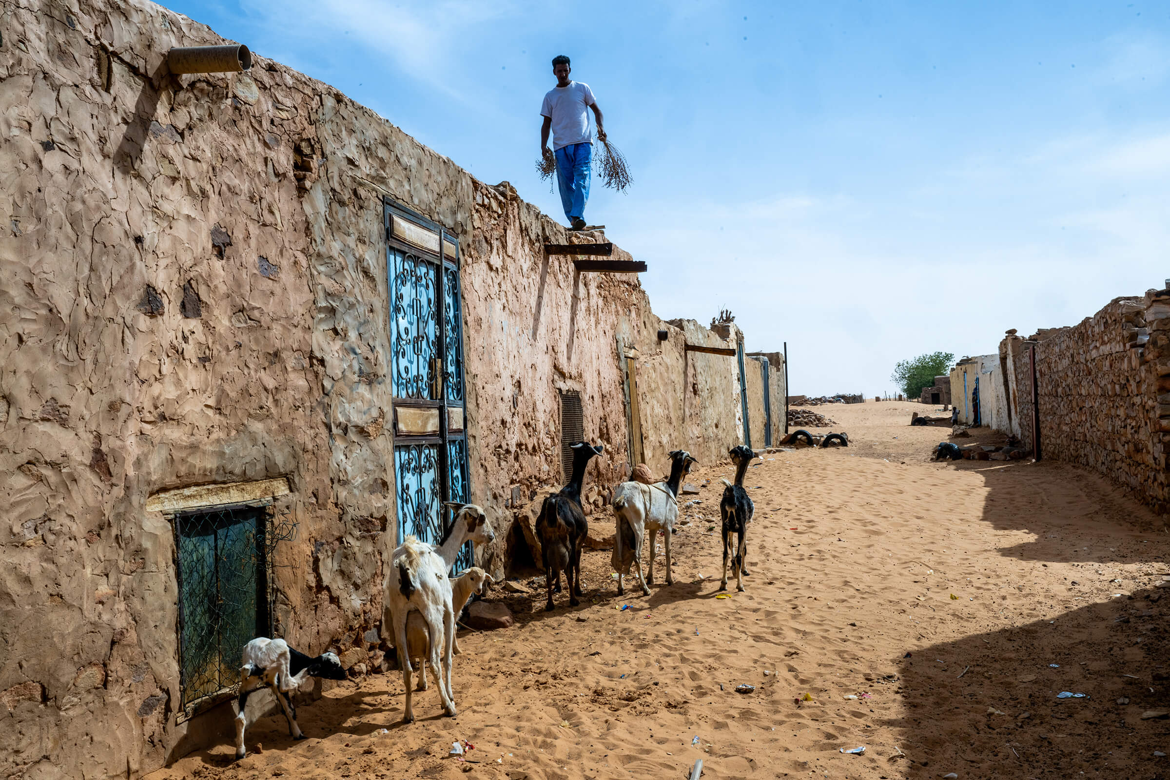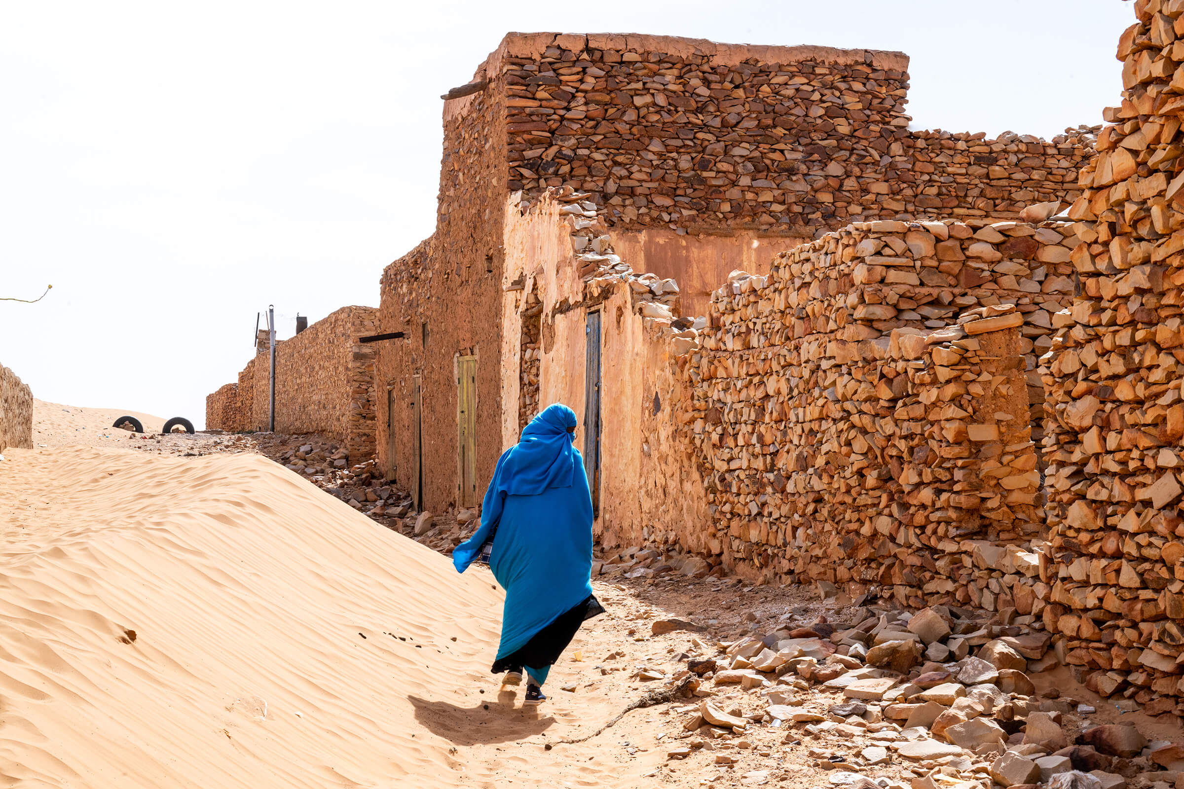 Die Reise führt mich zum Ben Amira, dem größten Monolithen Afrikas, ins aufgelassene Steinsalzabbaugebiet von Idjil, von dem aus die Salzkarawanen loszogen. Bis dann das billige, aus dem Atlantik gewonnene Salz, aus dem Senegal, Idjil die wirtschaftliche Basis nahm. Über Waschbrettpisten und über vom Sturm verwehte Weichsandfelder kämpfte ich mich bis zu den Bibliotheken der heiligen Stadt Chinguetti, die 2003 als Unesco-Weltkulturerbe vom Sand befreit wurde. In diesen Tagen erobert sich die Sahara die Stadt neuerlich zurück.